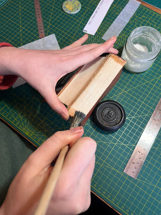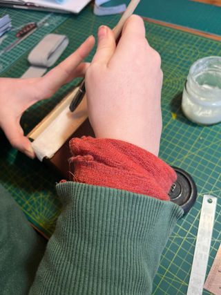 The method I used to secure the spine was to create an Oxford Hollow. Using the Kozo (cut to 3 x the width of the spine) I folded it into thirds and then used the Wheat Starch paste and PVA mix to laminate the spine of the book block.
